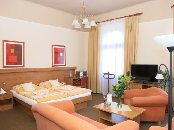 Umgebung: Aquaforum (Komplex der Innen- und Außenpools, Wasserattraktionen, Saunas, Whirlpool, usw.), Kurstädte Marienbad und Karlsbad, Burg Loket, Schloss Kynzvart, Kloster Tepla, Naturschutzgebiet Soos